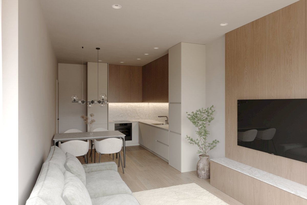 Byt je vybaven podlahovým vytápěním (formou el. rohože) vysoce kvalitními vinylovými podlahami. Energetická třída B navíc garantuje nízké náklady na provoz.