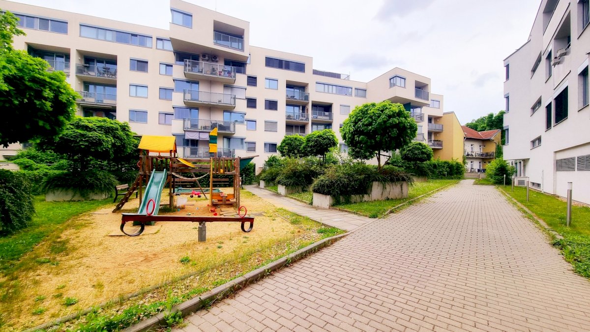Ve vnitrobloku domu se nachází relaxační zóna s parkovou úpravou a dětským hřištěm.
