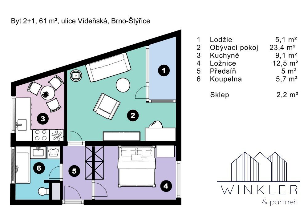 Nabízíme k prodeji byt o dispozici 2+1, s garážovým stáním v podzemních garážích, lodžií a sklepem, na ulici Vídeňská, ve vyhledávané lokalitě Brně-Štýřicích.